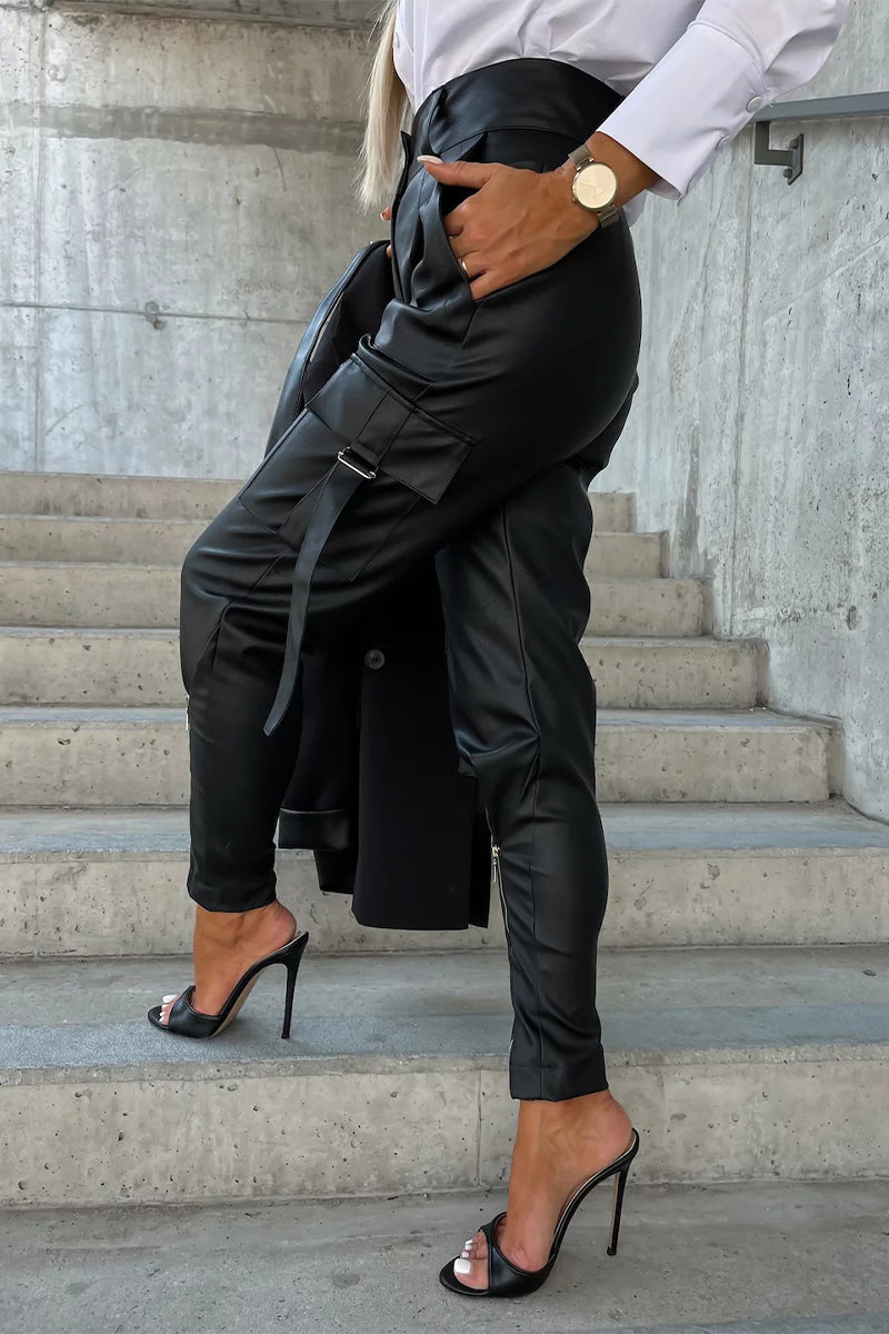 Casual Solid Pocket Zipper Regular High Waist Pencil Solid Color Bottoms
