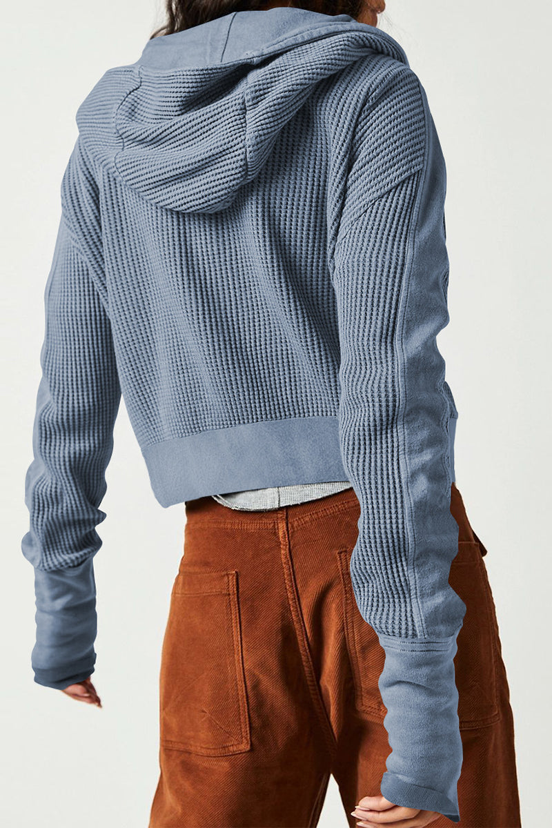 Casual Solid Zipper Hooded Collar Outerwear