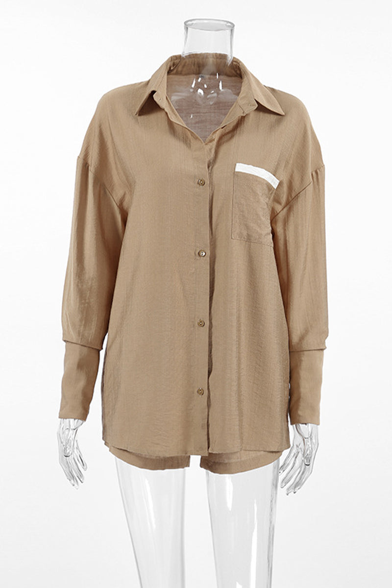 Casual Street Solid Color Patchwork Contrast Turndown Collar Long Sleeve Two Pieces