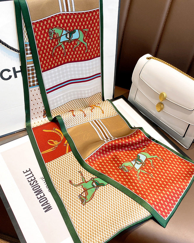 Checked Pony Fashion Double Layer Silk Scarf