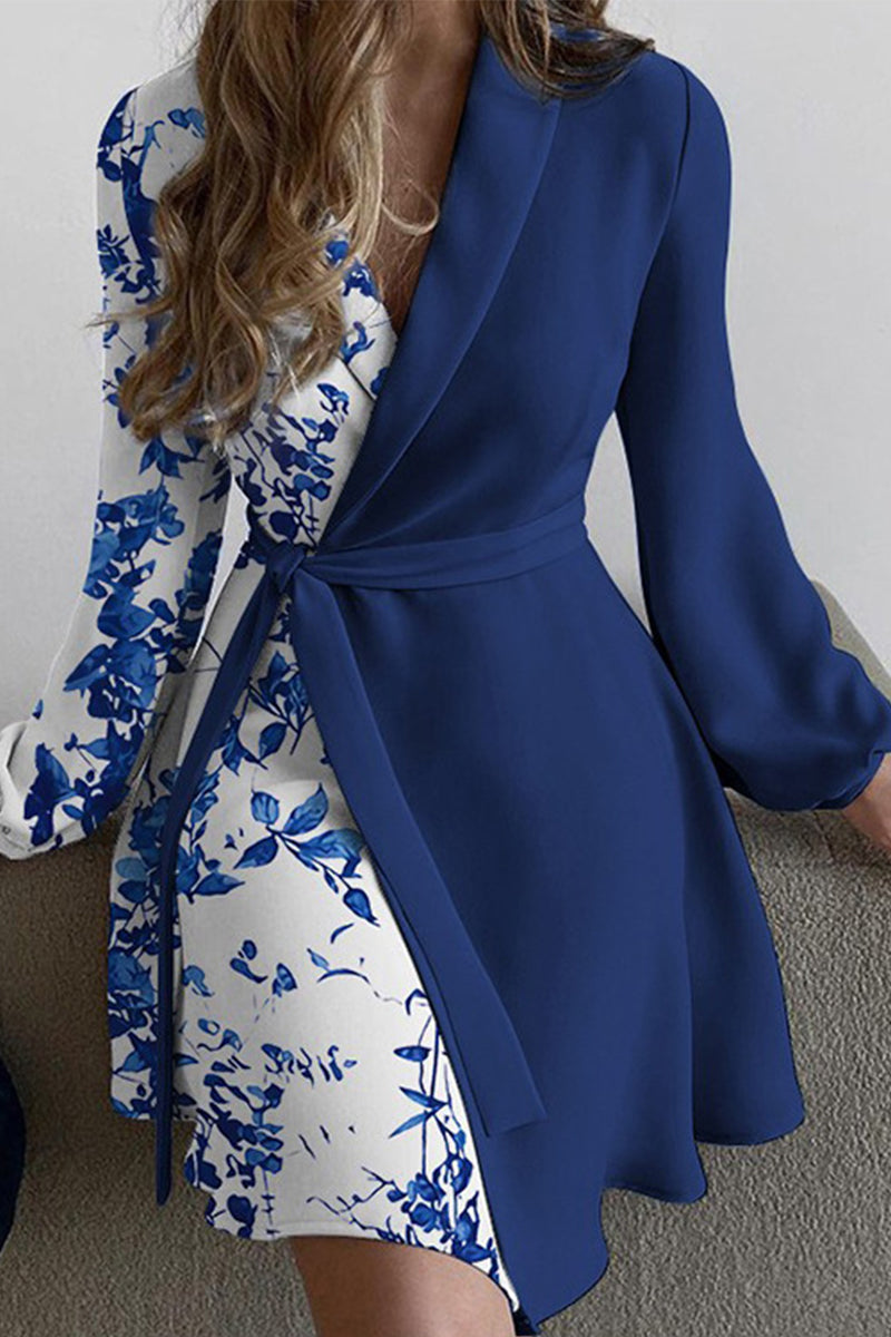 Elegant Print Frenulum Turn-back Collar A Line Dresses