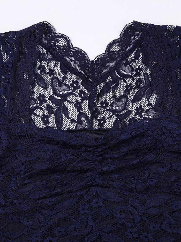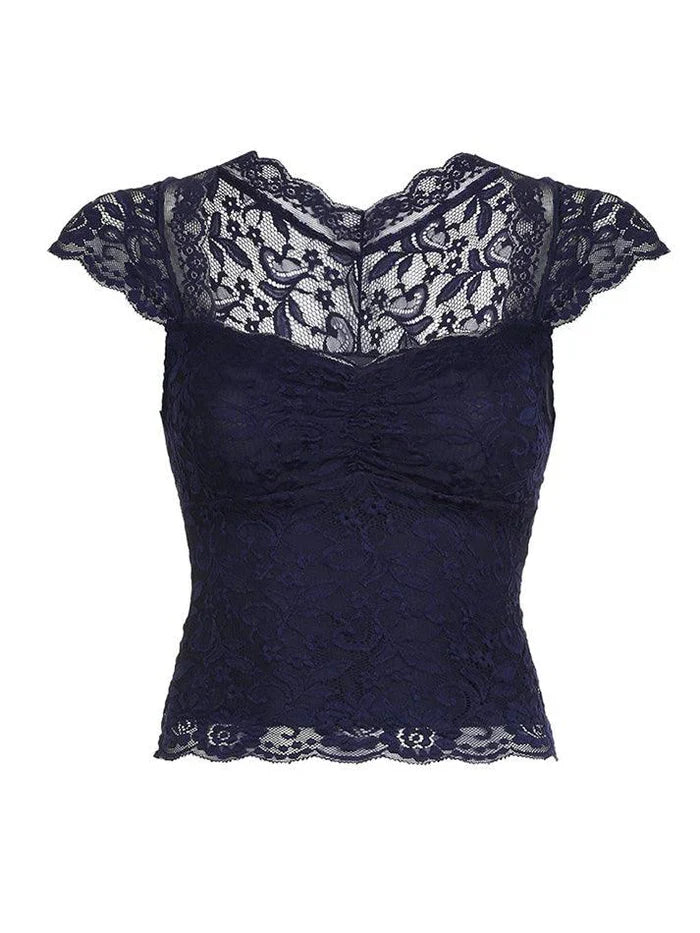 Navy Blue Vintage Lace Slim Short Sleeve Tee