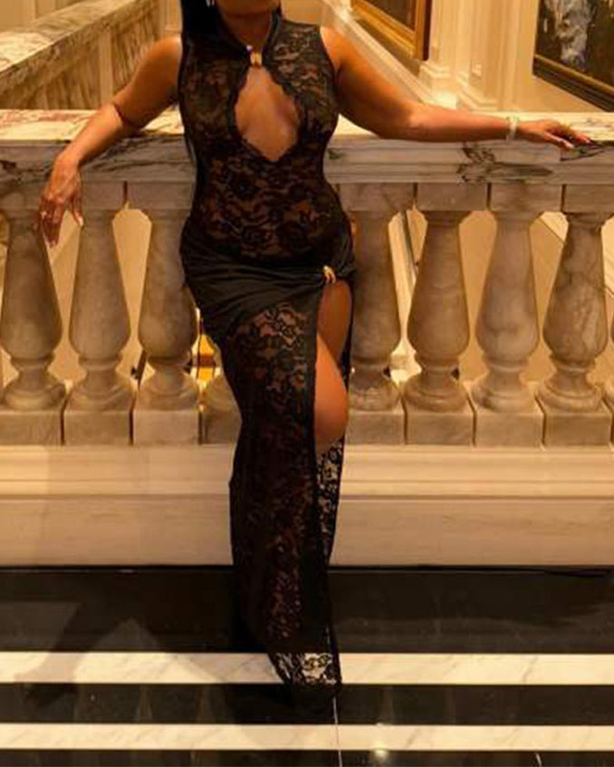 Lace Hollow High Slit Slim Sleeveless Dress