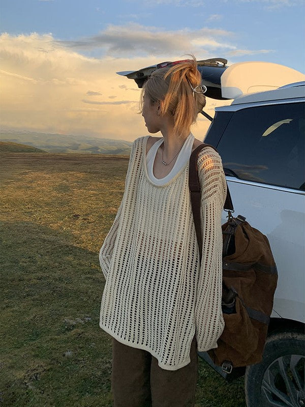 Apricot Vintage Oversized Cutout Knit Long Sleeve Top
