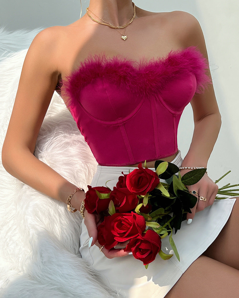 2. Feather light: Made from high-quality, lightweight materials, this top feels like a dream against your skin. The feather panel detail adds a touch of elegance and femininity, making it the perfect choice for any occasion, whether it's a casual brunch or a night out on the town.