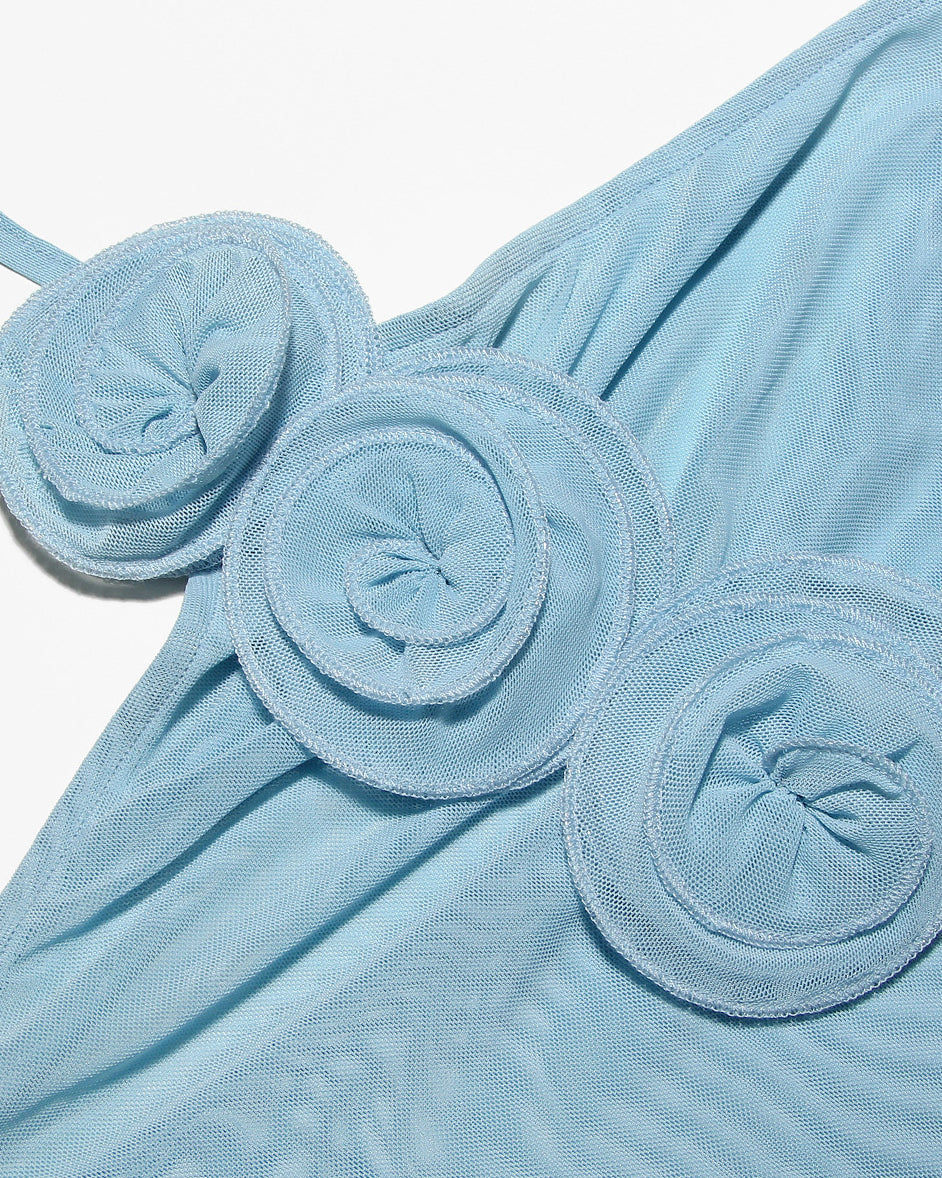 Mesh Halterneck Floral Backless Floor-Length Long Dress