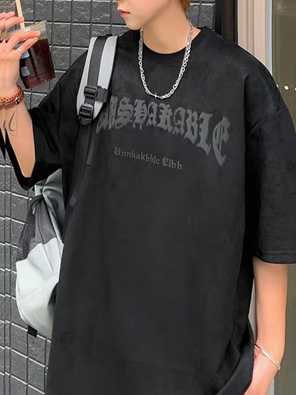 Punk Oversized Faux Suede Short Sleeve Top with Skeleton Graphic