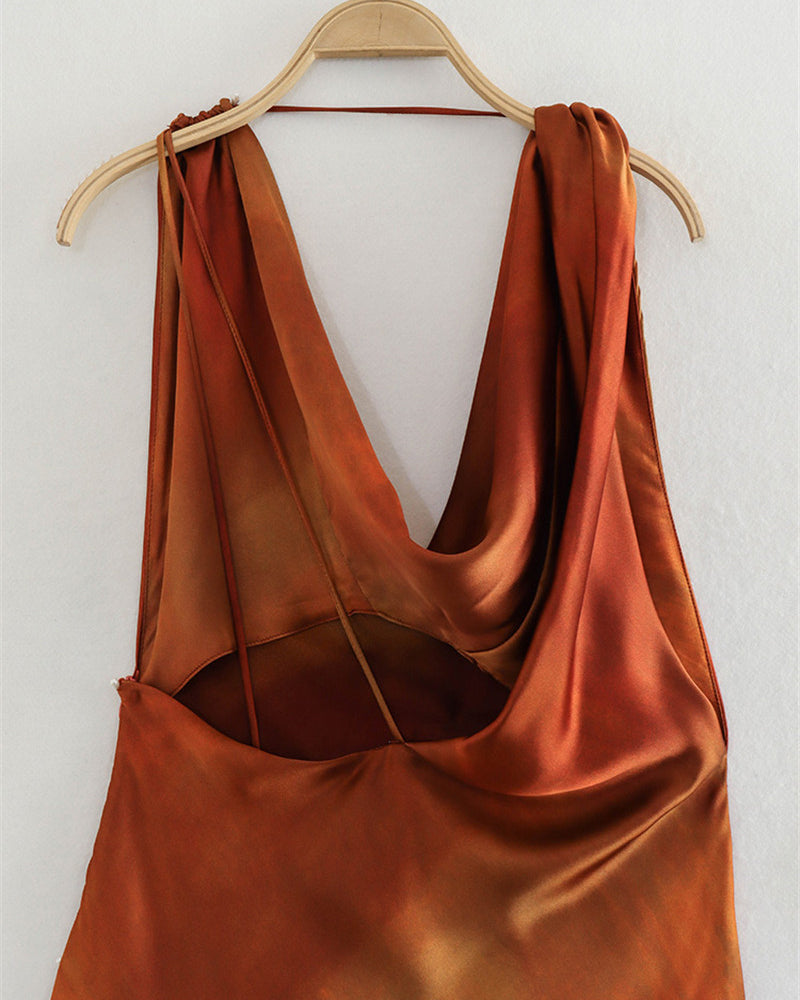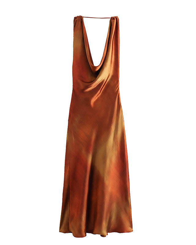 Scoop-Neck Silk Satin Tie Dye Dress