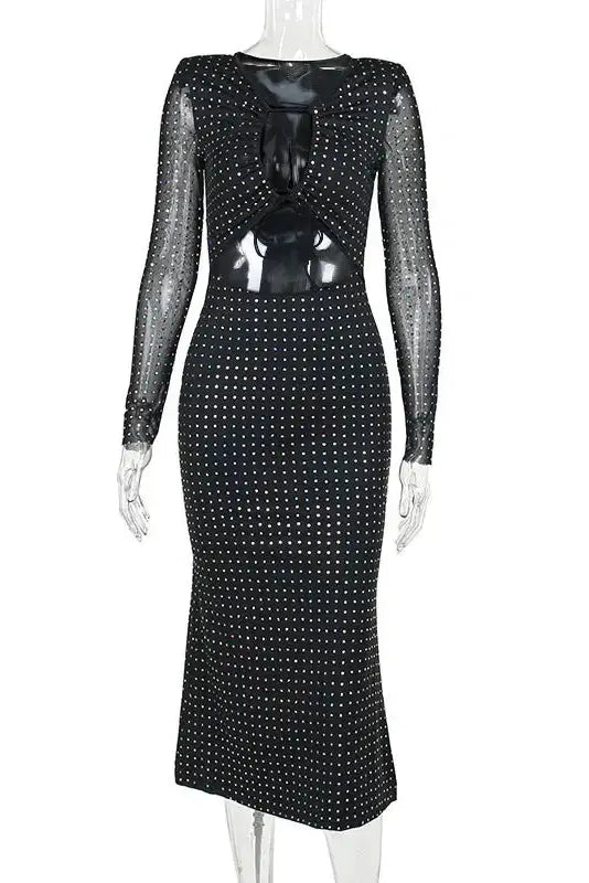 Embrace glamour and sophistication with Sequins Hollow Out Maxi Dress. This stunning dress features intricate sequin detailing and mesmerizing hollow-out patterns. exuding elegance and charm.