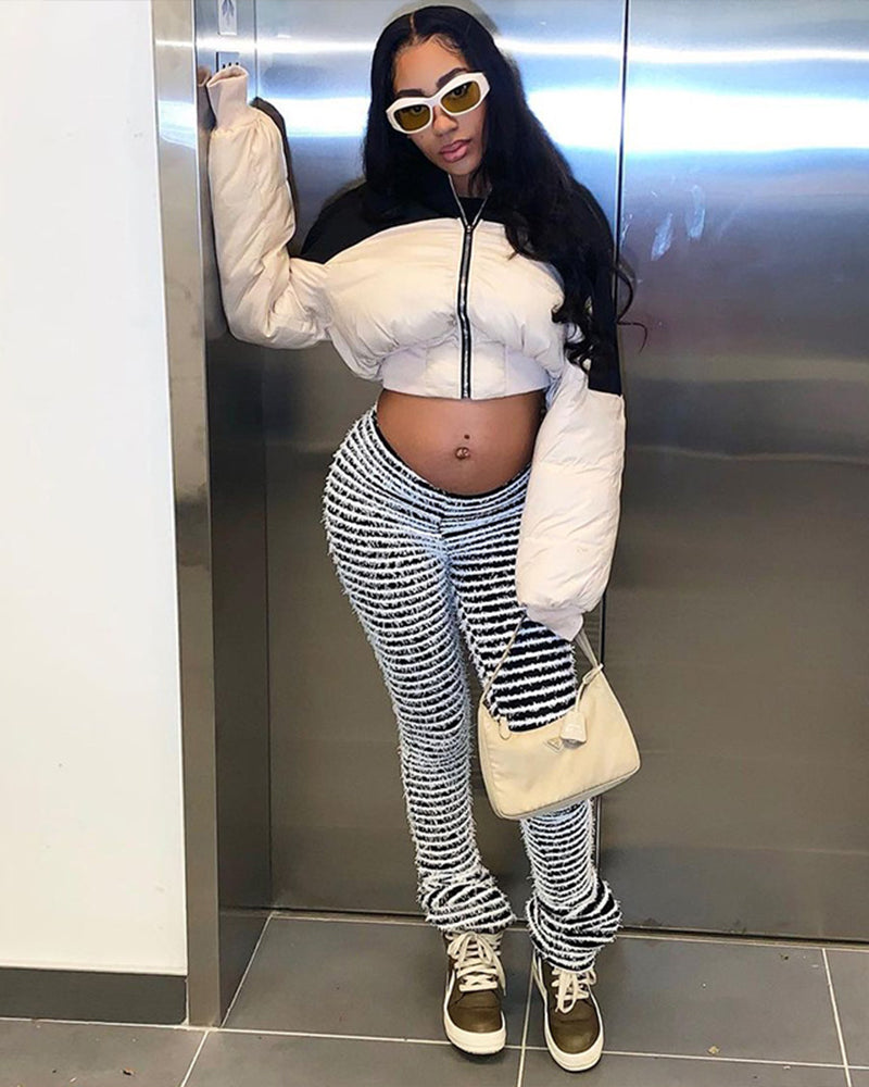 Sexy High-Waisted Striped Knit Patchwork Long Trousers