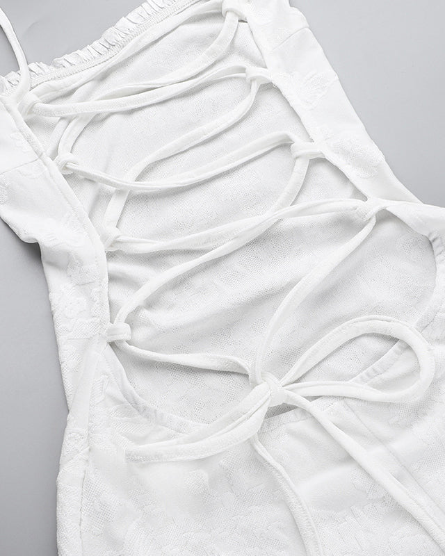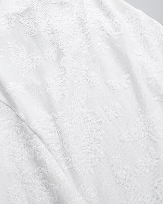 Square Neck Jacquard Backless Suspender Wrap Butt Fishtail Dress