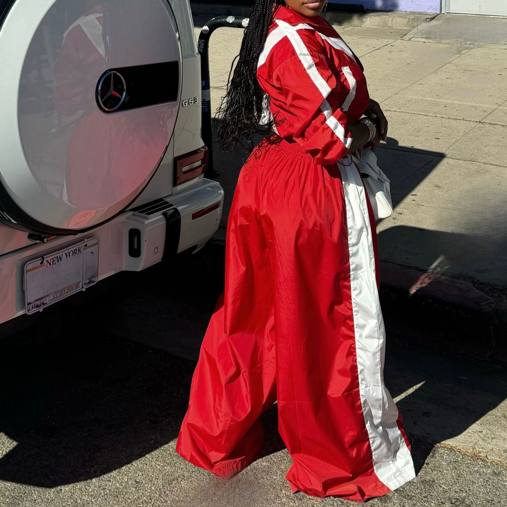 Women Clothing Sportswear Suit Woven Baggy Coat Two Piece Set Stitching Spring Autumn